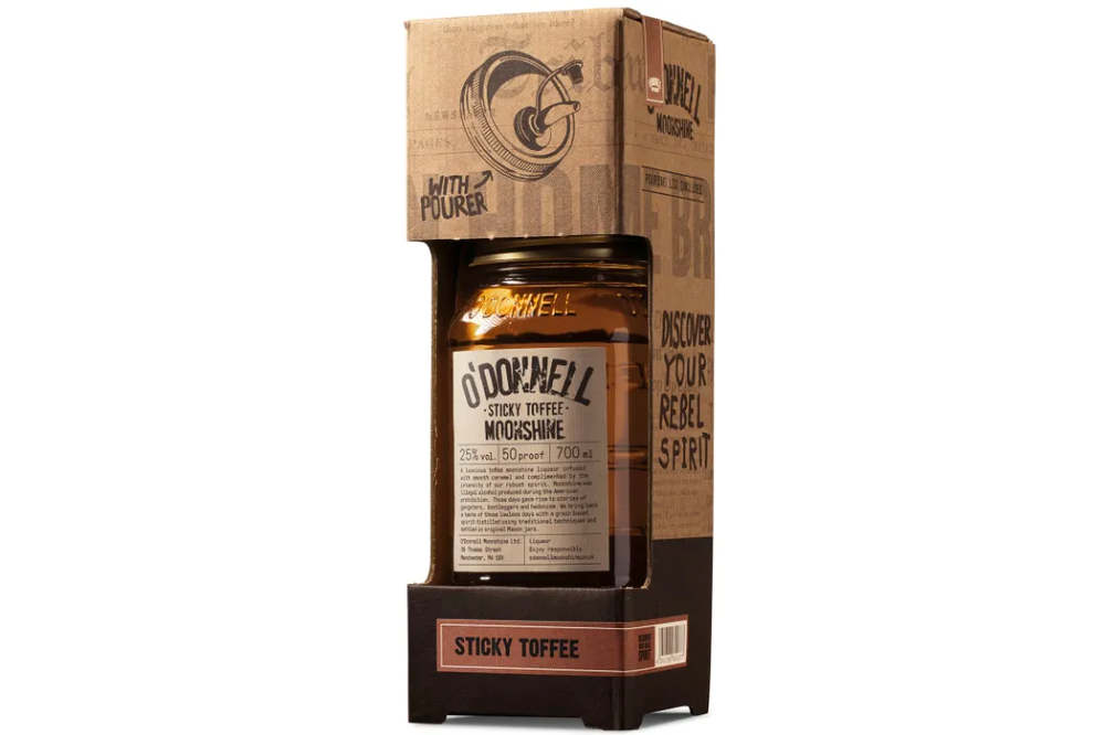 O’Donnell Moonshine Sticky Toffee: Süßer Likör-Trinkgenuss (25% vol.) – intensiv und robust im Geschmack.